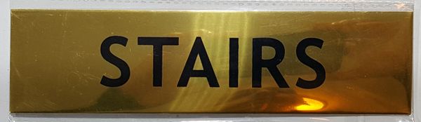 This is an aluminum “STAIRS” SIGN with Gold BACKGROUND,BLACK LETTERS,Size 2''x7.75'' and HEAVY DUTY DOUBLE SIDED TAPE for installation.In NYC use/post door sign to inform tenant/guest/officers of entry/exit/door/access to stairwell designated area