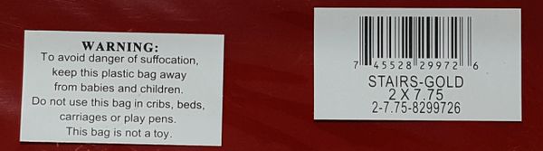 This is a sturdy STAIRWAY SIGN - Gold ALUMINUM BACKGROUND WITH BLACK LETTERS (MATERIAL IS STURDY ALUMINUM; Size is 2'' x 7.75'') WITH HEAVY DUTY DOUBLE SIDED TAPE for quick installation. The thickness of this Gold background sign is 0.02''. The self adhesive sticker on the back of the Gold aluminum sign is HEAVY DUTY RED with very strong adhesive force. The Gold aluminum sign is exceptionally sturdy. The stairwell sign is an aluminum Gold sign for indoor use only.